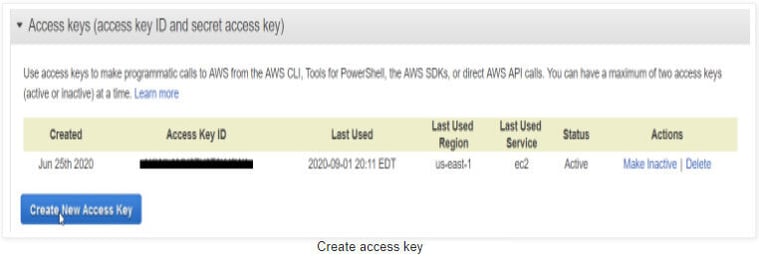 Click Create Access Keys under the “Access keys” section. You have the right to 2 Access keys as a Free Tier user