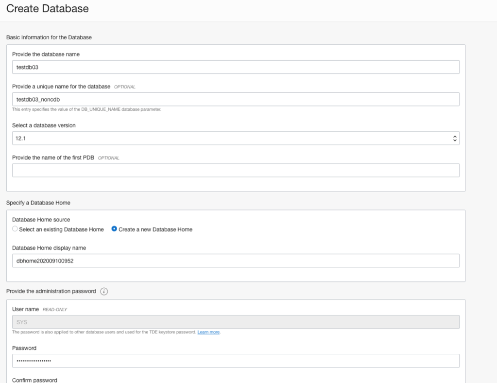Anyway, I tried to create a database from the OCI console and see how it would work.