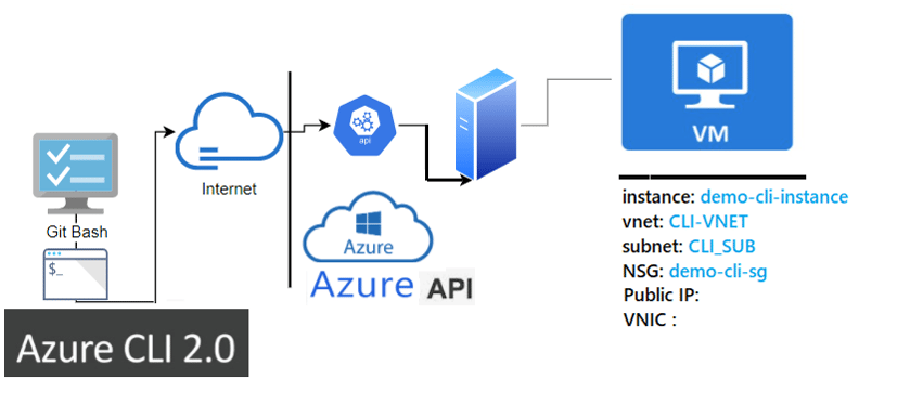 The following figure shows the layers involved between our workstation and Azure while running the CLI commands.