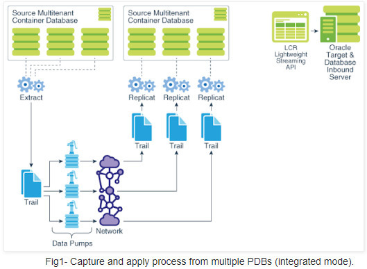 Golden Gate 12c features along with Oracle multi-tenant architecture introduced some changes to the way replication works (see Fig-1). Another interesting fact is that few of Oracle Streams features have now found their way into GoldenGate.