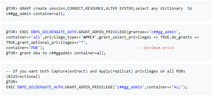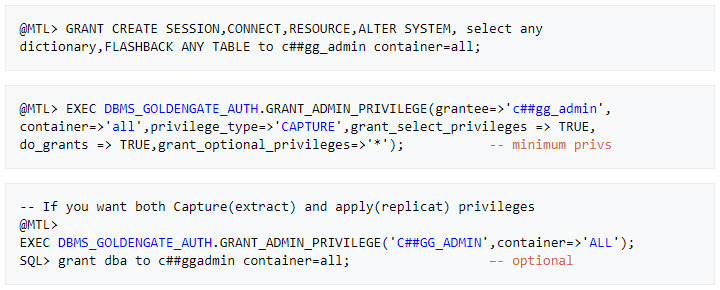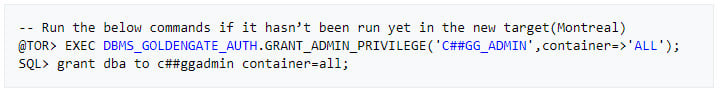 » Verify that the right source privileges are granted to GoldenGate admin user