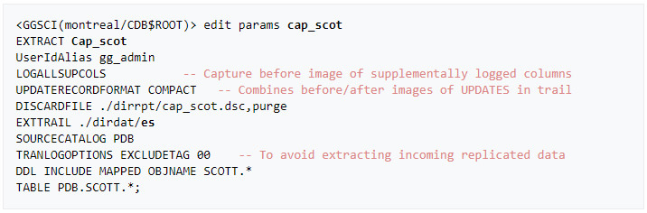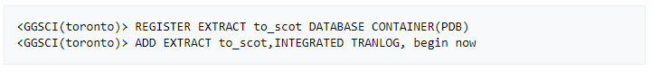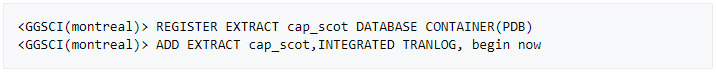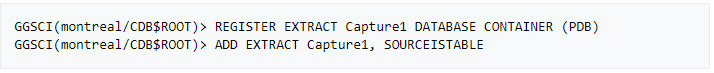 - The extract must operate in integrated capture mode (only supported mode for multi-tenant DBs), a log mining server is involved and this is only accessible from the root container (CDB$ROOT).