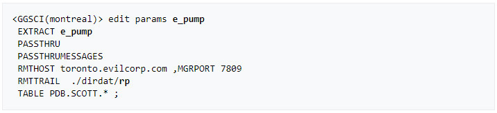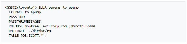 As Extract and Replicat processes will be on both servers, I will refer to Montreal as a target and Toronto as a source.
