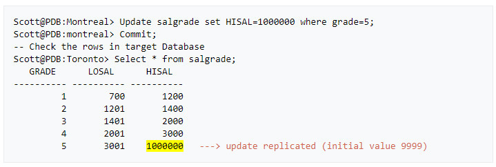 » We can now verify that the data is replicated to the target by performing a little update on the source database