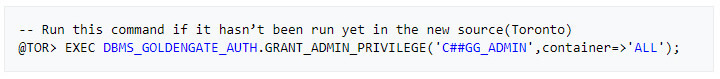 – Assign the correct source privileges to the GoldenGate admin user as shown below