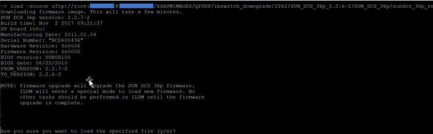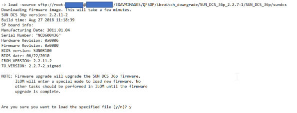 load -source sftp://root:xxxxx@xx.xx.xx.xx:/EXAVMIMAGES/QFSDP/ibswitch_downgrade/SUN_DCS_36p_2.2.7-1/SUN_DCS_36p/sundcs_36p_repository_2.2.7_2_signed.pkg