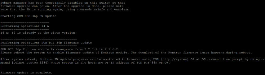 Now the InfiniBand switches are back to the desired version (2.2.6-2) for this downgrade test. As you noticed, using this technique is quite simple and effective.