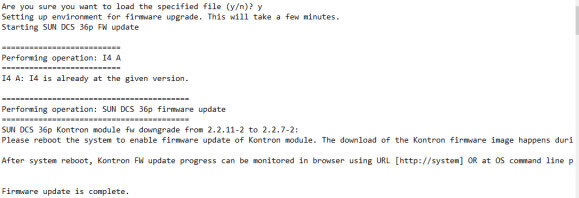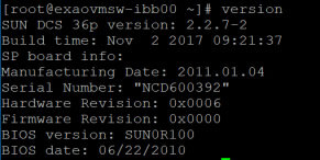 Difference between this command and the one used for 2.2.7 => No « : » between ip and directory parameters load -source sftp://root:xxxxxxx@xx.xx.xx.xx/EXAVMIMAGES/QFSDP/ibswitch_downgrade/2262/SUN_DCS_36p_2.2.6-2/SUN_DCS_36p/sundcs_36p_repository_2.2.6_2.pkg