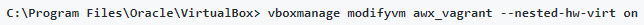 All you have to do is to make sure your VirtualBox is of version 6.1.4 and from there you can “activate” nested virtualization. Use either one of the below options.