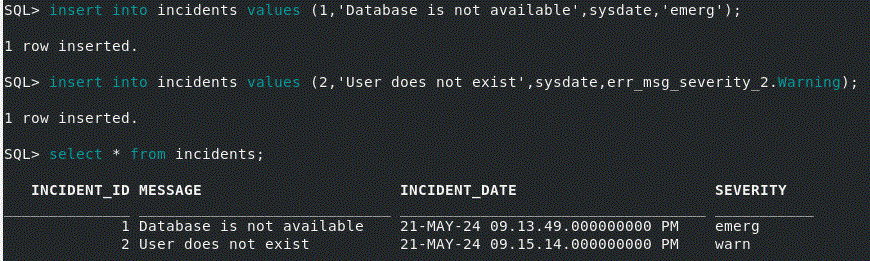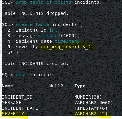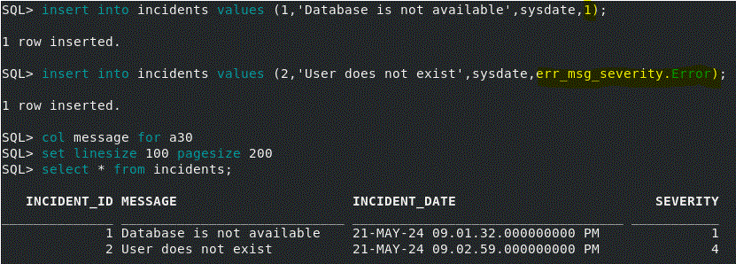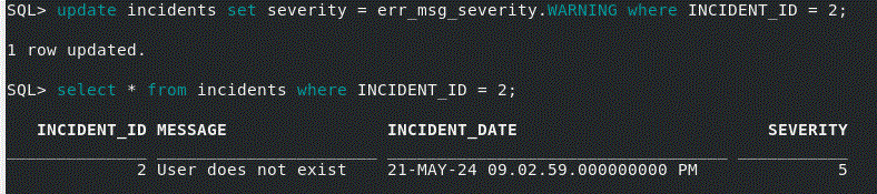- Remember that the severity column value should be between 1 and 8. Assigning a value not between 1 and 8 will raise ORA-11534
