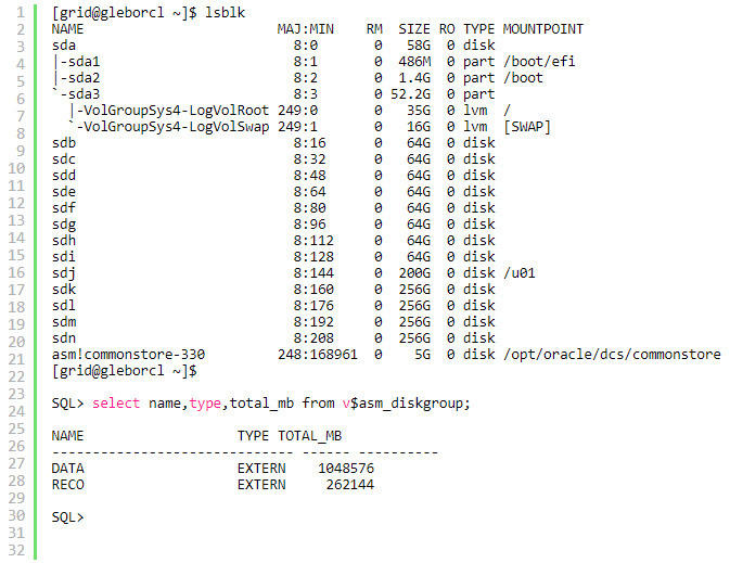 Let’s have a look at the actual allocation in the ASM on one of the DBCS VM.