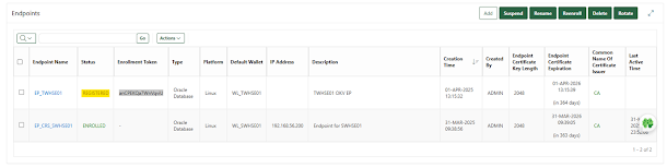 $ORACLE_HOME/jdk/bin/java -jar /u01/app/oracle/admin/TWHSE01/wallet_root/okv/okvclient_TWHSE01.jar -d /u01/app/oracle/admin/TWHSE01/wallet_root/okv -v