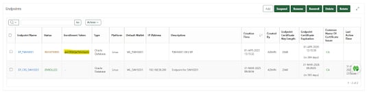 Endpoints are Oracle Key Vault clients that securely store and retrieve security objects such as keys, passwords, certificates, and credential files.