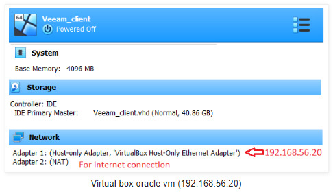 Note: Make sure you have defined the host-only adapter network in VirtualBox
