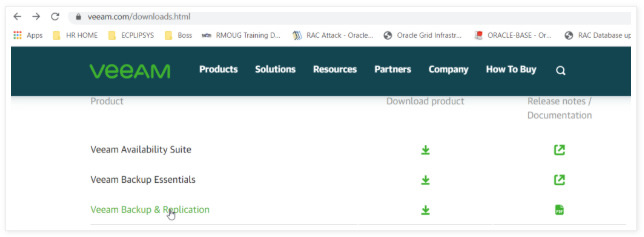 - Once subscribed for the 30 days trial, download the installer (iso) and mount in on your veeam_server VM