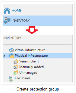 - Go to the inventory section under the physical infrastructure folder and click Create protection group.