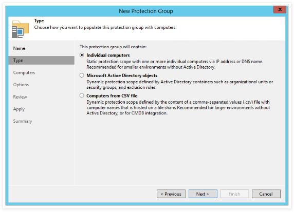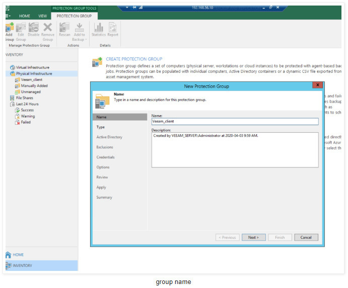 We will first have to create a protection group and add it to the infrastructure inventory which is just another name for Backup targets.