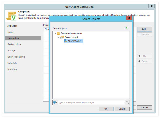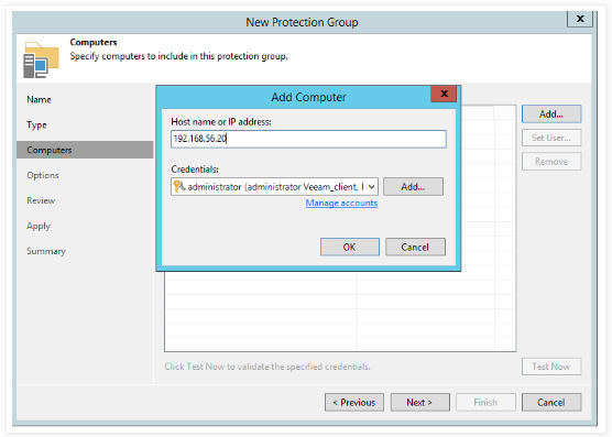 - Add the target VM you want to backup (IP address along with admin credentials)