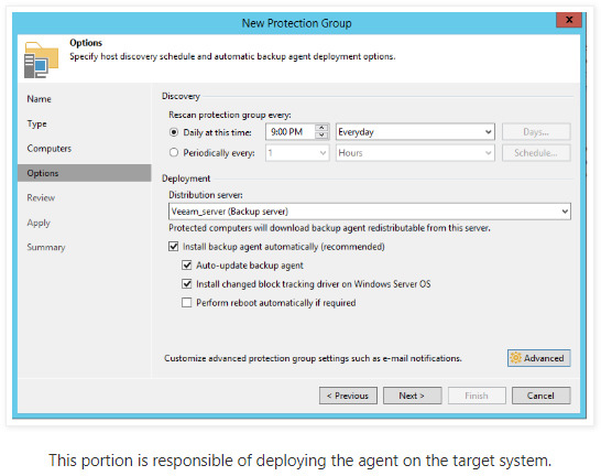 - The next segment is basically the options available for your agent deployment on the target computer and the daily schedule of agent check.