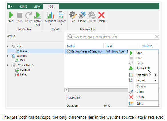Confusion over Full vs Active Full: You will notice that there are two buttons available on the backup job interface.
