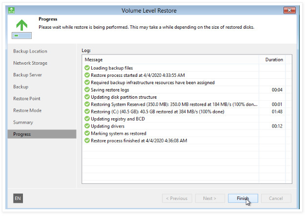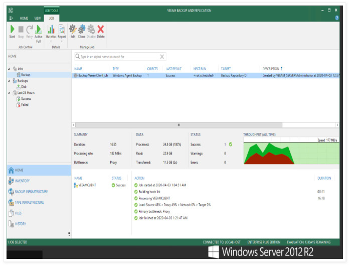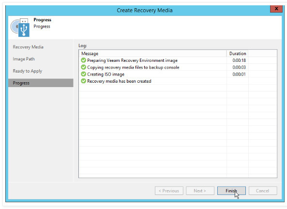 - Let’s have a closer look at the details of this job. Notice it only took 2 minutes to read 23GBs (probably because VMs were in my laptop) while most of the work was consumed by recovery media files collection. These very files will be helping us to create the Veeam recovery media (sort of bootable recovery drive)