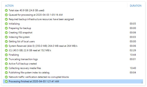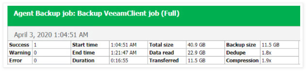 hence our first backup will be de-facto run as an active full backup. The below screenshot displays the report of my first backup which was pretty fast for a 24GB target VM.