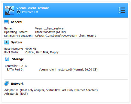 Today, we will demonstrate that with software like Veeam, we can restore a VM as if it was a physical machine using its Bare Metal recovery feature on a dummy virtual machine. Note that although the lab is based on VirtualBox, I have had a similar result when running it for OVM.