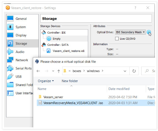 At this point, we have all we need to create a bootable recovery media which will allow us to restore the crashed VM