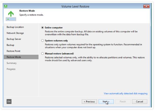 The trick here is to fool Veeam backup tool by spinning a shell VM with similar hardware specs (disks/network adapters) than the original machine before mounting the recovery ISO in the DVD drive.